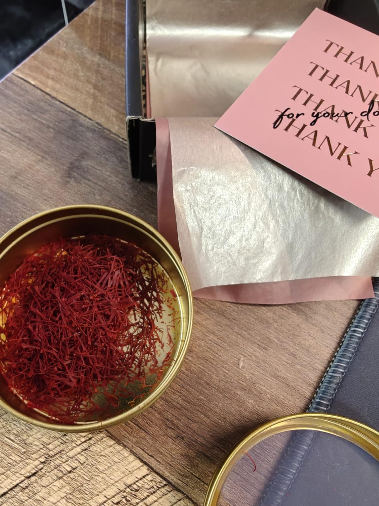 Very lovely saffron presented elegantly. I used an ice cube to bloom the saffron for color and flavor. It also helped release the aroma as the ice cube melted. Also respect the nonprofit mission story - good cause.
