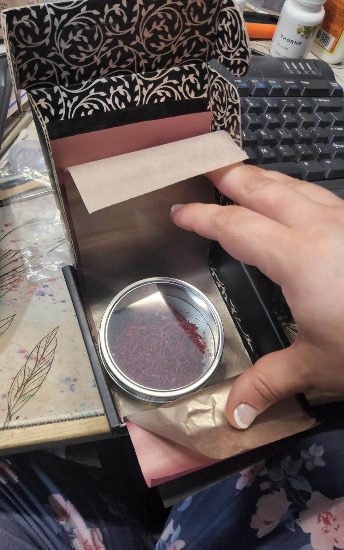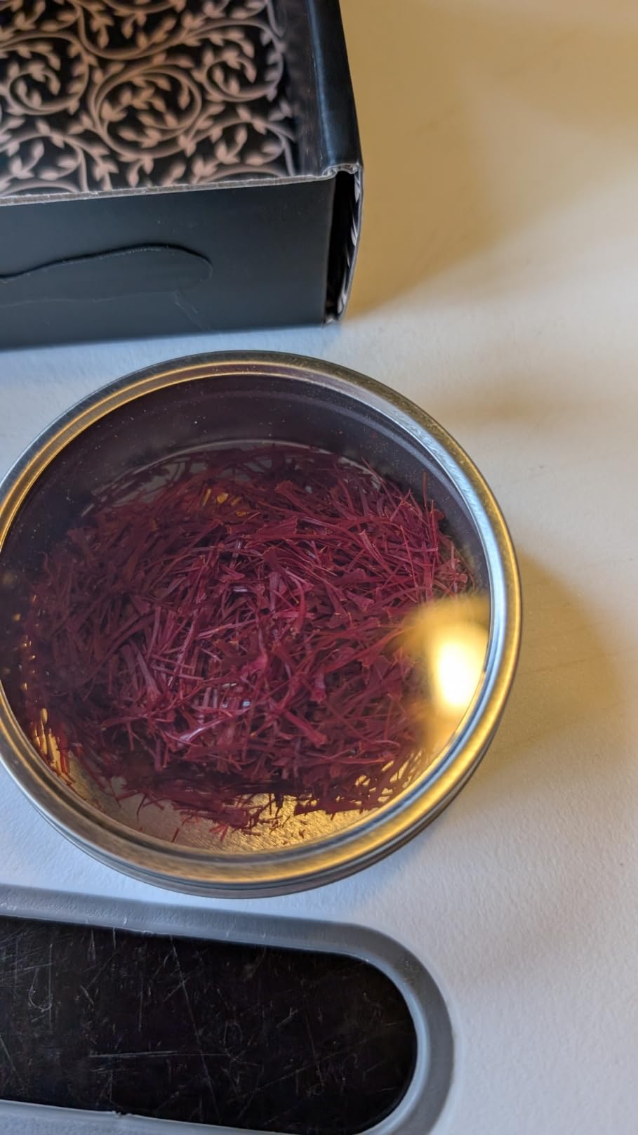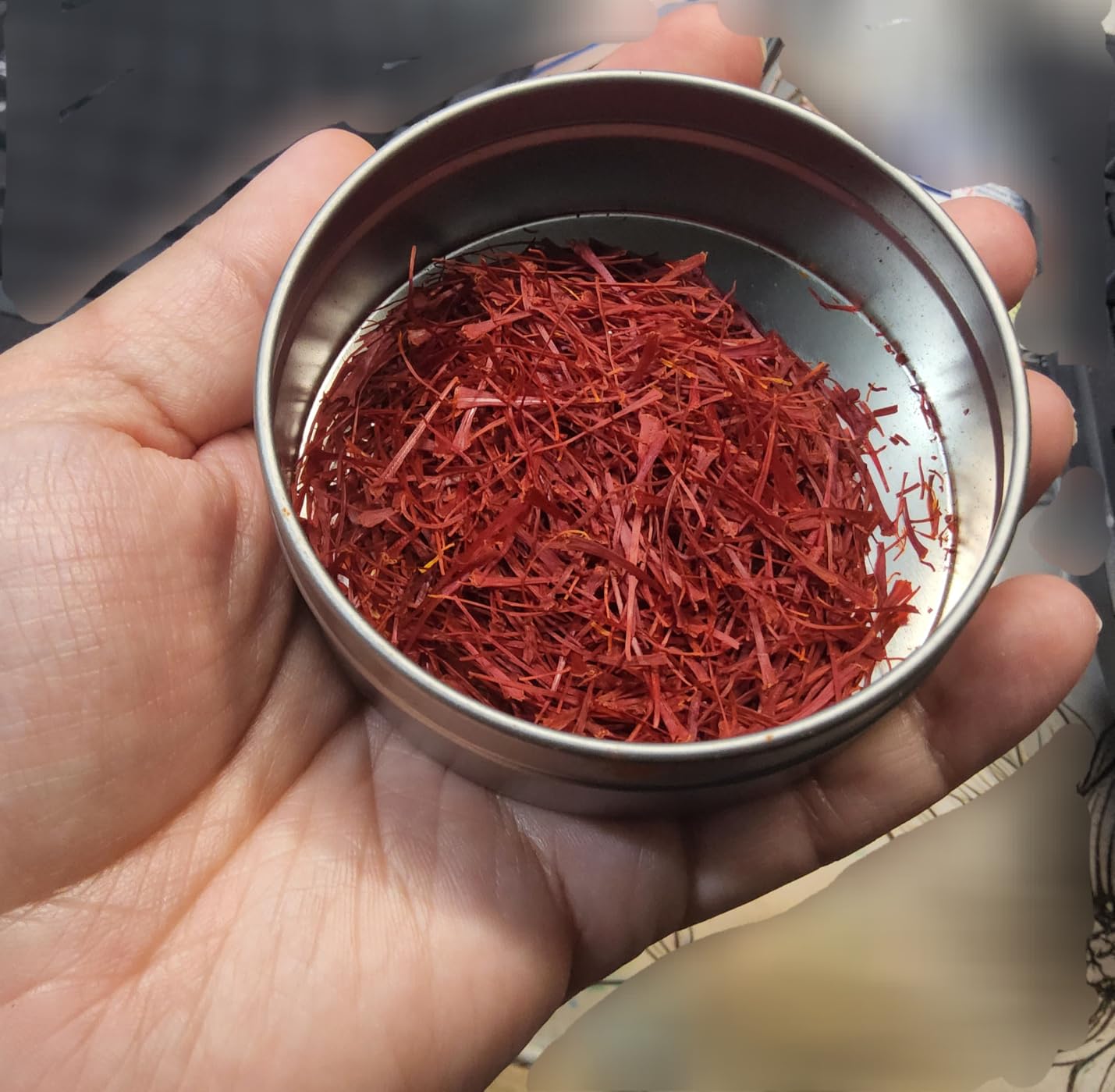 This is expensive but nothing compared to what it costs me in my local grocery store. You get a very big quantity here; this will last me quite a while even if I add it to every pot of rice. It is fragrant and beautiful and adds a very distinctive and delicious flavor to my cooking. It smells and tastes very fresh. The only thing that's a little bit annoying is that I don't like the tin. I find it a little bit hard to open and I can't just put the saffron on my spice rack. I had to transfer the saffron to a different container in order to use it on my rack, so I wish it just came in a regular cylindrical bottle shape. It's not enough to deduct a scarf for because it's really a wonderful product at a great price.